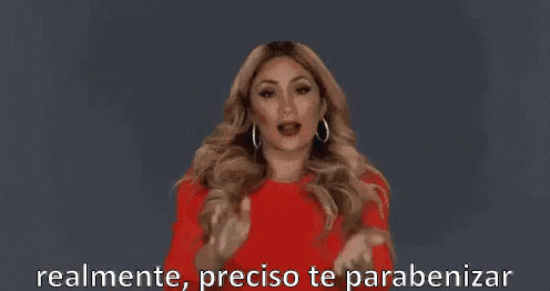 Woman in a red dress making a congratulatory gesture, saying 'really, I need to congratulate you'.