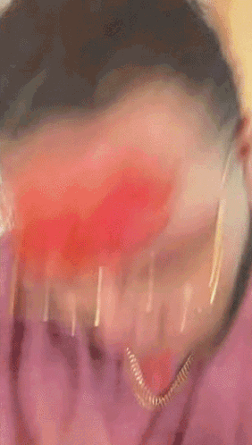 a blurry picture of a person 's face with a pink shirt