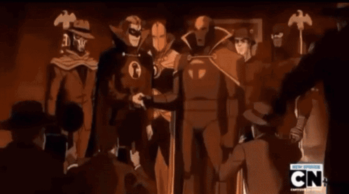 Red Tornado and other DC heroes from Young Justice pose for a vintage-style photo.
