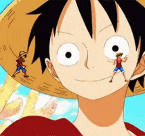 Monkey D. Luffy from One Piece reacts as the word 'Reglement' appears on screen.
