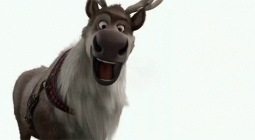 Animated reindeer making funny faces with its tongue sticking out against a white background.
