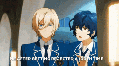 Anime characters from Ensemble Stars reacting to rejection for the 100th time.