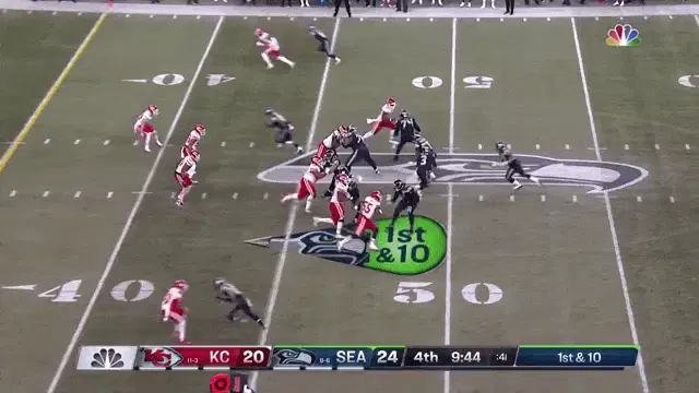 Soccer player from FK Austria Wien raising hand to protest an offside call.