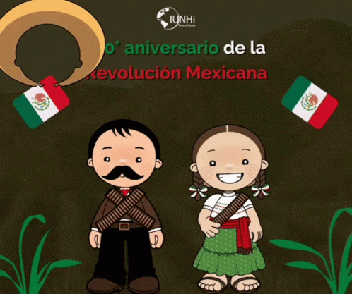 Celebrating the 110th anniversary of the Mexican Revolution with animated characters.