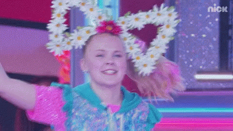 Jojo Siwa performs with a daisy heart headpiece and sparkly vest on stage.