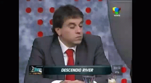 Journalist Distasio reacts to the news of River Plate's relegation, with 'DESCENDIO RIVER' on screen.