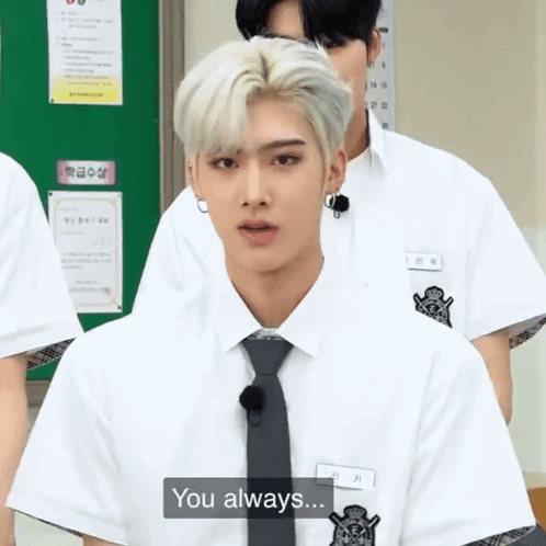 Zerobaseone member Ricky (Shen Quanrui) winks charmingly while wearing a school uniform.