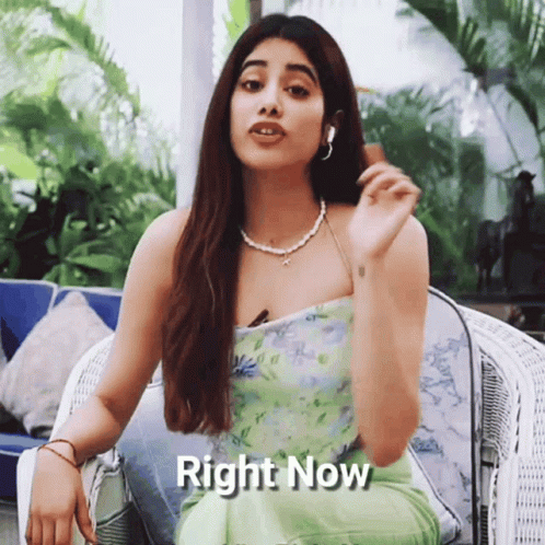 Janhvi Kapoor speaking and gesturing, with 'Right Now' text displayed on screen.