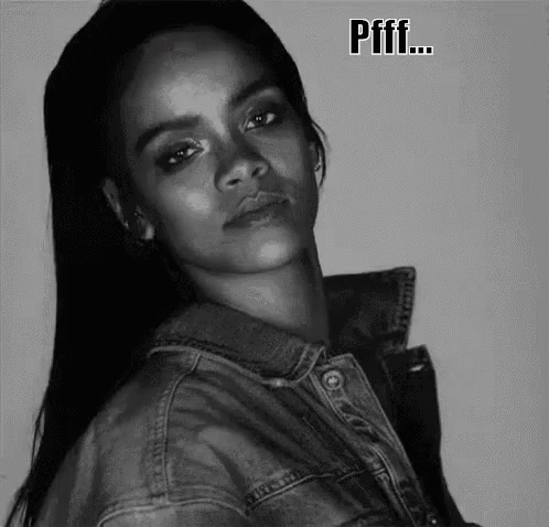 Rihanna in black and white, giving an indifferent look with the caption 'As if I care'.