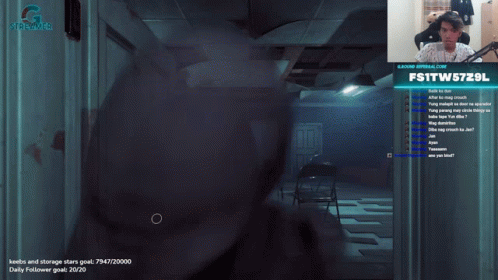 A streamer reacts with a funny face to a Rikuuen jumpscare during a live broadcast.