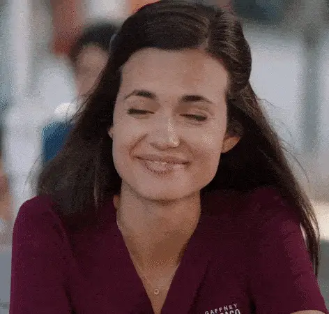 Maisa giggles playfully in front of a tree with numbered apples, enjoying a fun game.