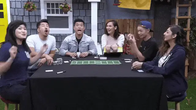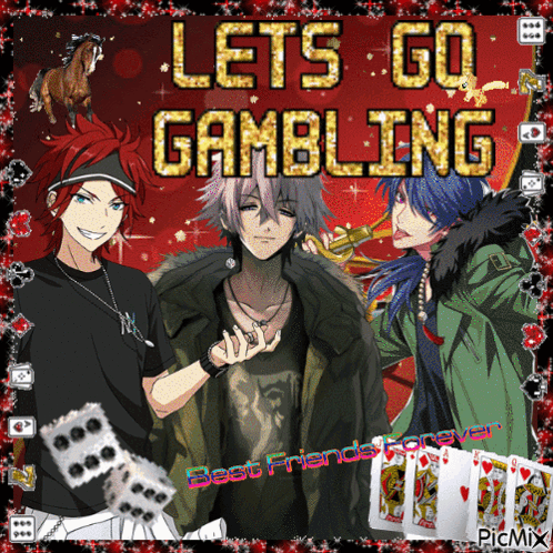 Rinne Amagi, Morichika Haruki, and Dice Arisugawa ready for gambling fun with dice and cards.