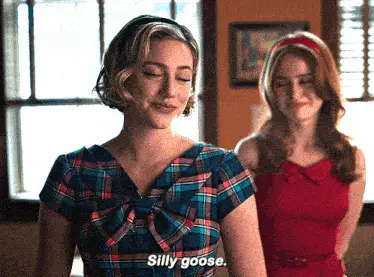 Betty Cooper (Lili Reinhart) looks shocked in Riverdale, wearing a plaid dress in a floral room.