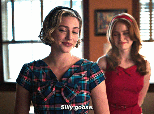 From Riverdale, a character says 'Silly goose' while Cheryl Blossom (Madelaine Petsch) smiles in the background.