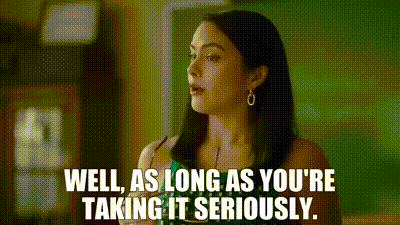 Camila Mendes as Veronica Lodge in Riverdale, delivering the line "Well, as long as you're taking it seriously."