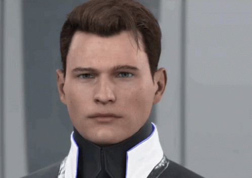 A close-up of RK900, also known as Nines, from Detroit: Become Human, giving an intense deathglare.