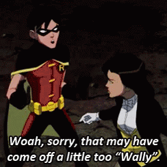 Robin and Zatana share a moment, with Robin apologizing for a comment that was 'a little too Wally'.