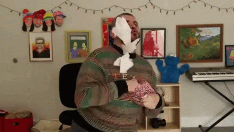 Robinburkart experiences an emotional moment, using tissue paper during an H3h3 segment.