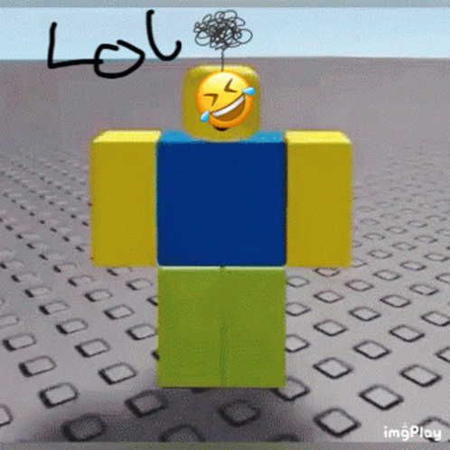 Roblox character with a laughing emoji face and 'LOL' text, a popular meme.