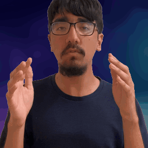 a man wearing glasses and a beard is making a gesture with his hand