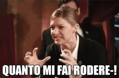 Woman expressing intense frustration with the phrase 'Quanto mi fai rodere!' and making dramatic hand gestures.