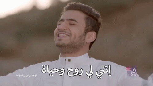 Abd Al-Majeed Al-Fawzan passionately sings 'You are my soul and life' in a white thobe, expressing deep emotion.