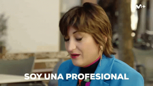 Susi Caramelo, wearing a blue jacket, confidently declares 'Soy una profesional' (I am a professional).