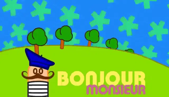 An owl with bright yellow eyes gazes intently, accompanied by the Arabic letter 'راء' and the playful greeting 'Boumjour'.