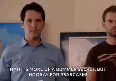 Paul Rudd from Role Models reacts with a sarcastic comment, expressing confusion or disagreement.