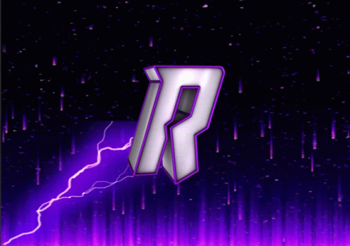A stylized letter R, possibly for Rolex Tt, glows purple with a lightning bolt on a dark, starry background.