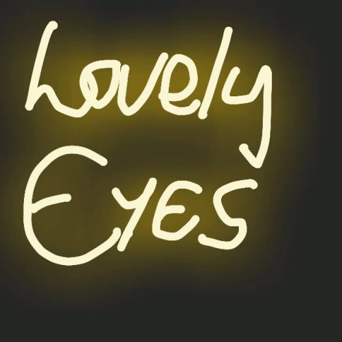 A glowing animation of the words 'lovely eyes' being written on a dark background.