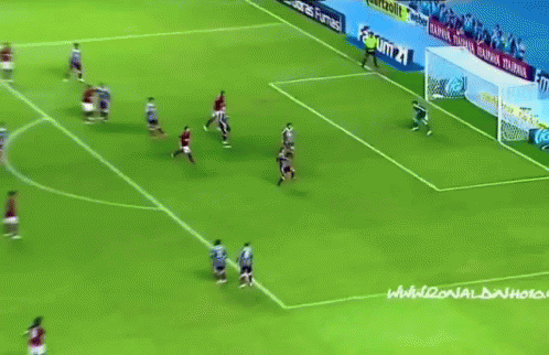 Football legend Ronaldinho showcases his skills during a soccer match, dribbling the ball on a green field.