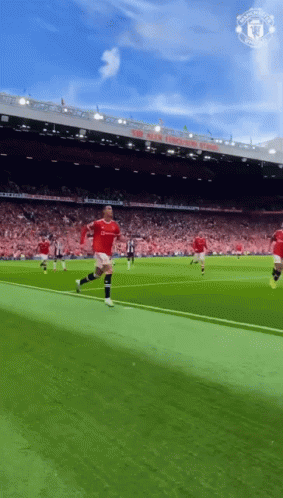 Cristiano Ronaldo celebrates a goal for Manchester United at Old Trafford with his signature 'Siuuu' celebration.