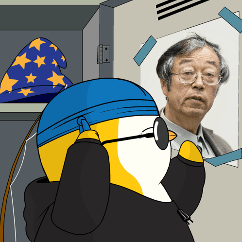 a cartoon of a penguin wearing sunglasses next to a man