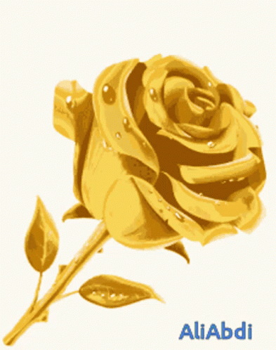 A beautiful golden rose with water droplets, featuring the signature 'AliAbdi' at the bottom.