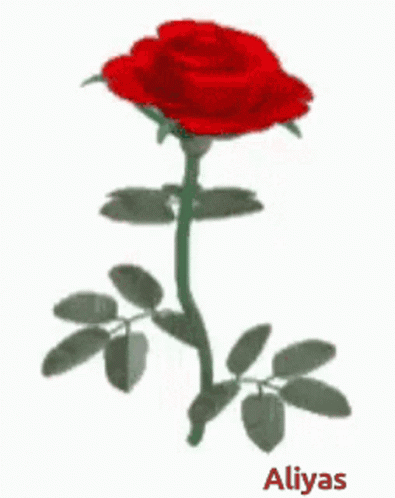 A beautiful single red rose with green leaves, featuring the name Aliyas at the bottom.