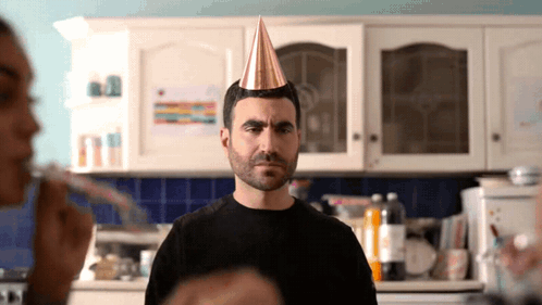 Roy Kent, Phoebe, and friends celebrate Happy Uncle's Day with party hats and joyful expressions.