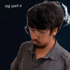 a man with glasses and a beard has rpg spell 4 written on his face