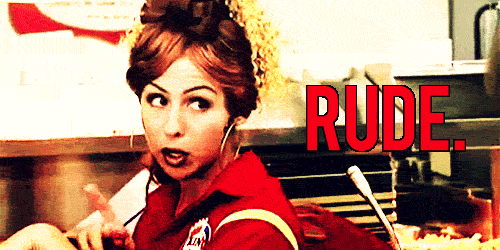 Bon Qui Qui, in her red uniform, points and emphatically says 'RUDE.'