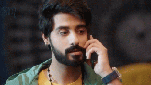 Rudraksh from Yeh Hai Chahatein is seen talking intently on his cellphone, looking focused.