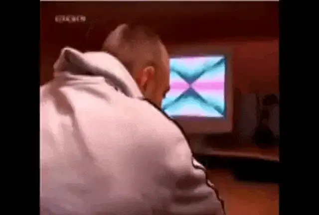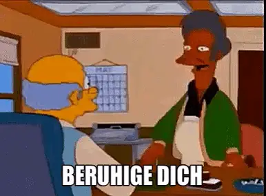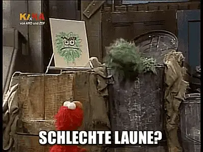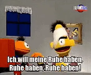 A woman with blonde hair shouts 'Ruhe!' into a microphone on a stage with a blue and purple background.