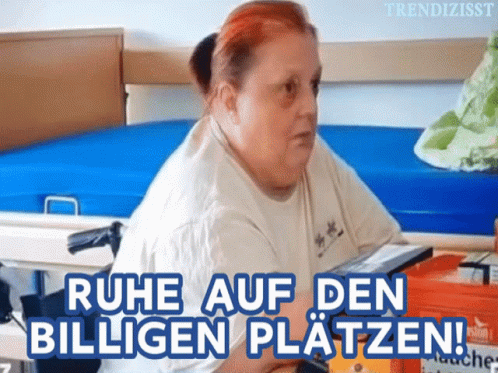 Gudrun from "Hartz und Herzlich" demands silence with the iconic phrase "Silence in the cheap seats!"