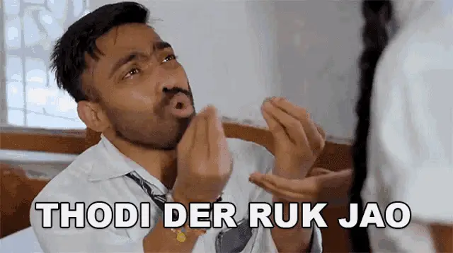 Pankaj Sharma in a red shirt, saying 'Ruk Ja Ruk Ja' (Stop, Stop) in a humorous moment.