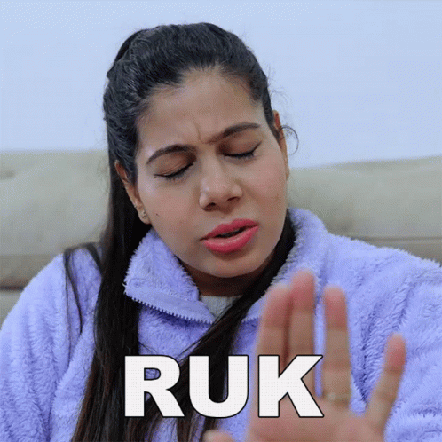 Sanjhalika Shokeen with a thoughtful expression, gesturing as the word 'Ruk' (Stop) appears on screen.