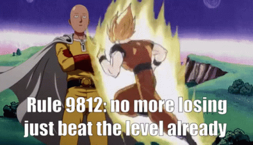 Saitama and Goku Super Saiyan illustrate Rule 9812: no more losing, just beat the level already.