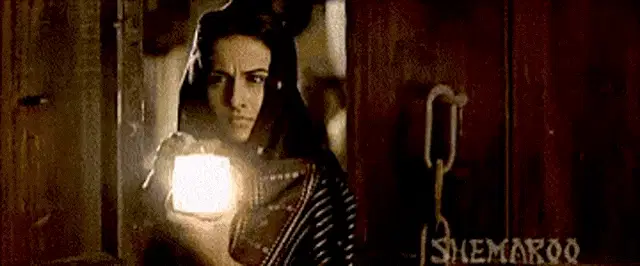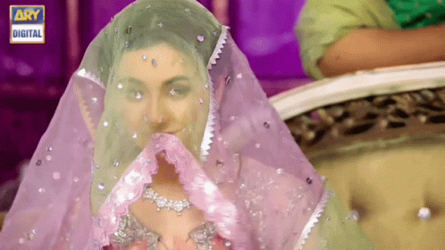 Hania Amir as Rumi in Ishqiya, playfully revealing her face from under a delicate, embellished veil.