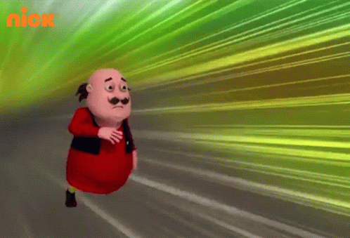 Motu from Motu Patlu is seen running with a frightened and shocked expression on his face.