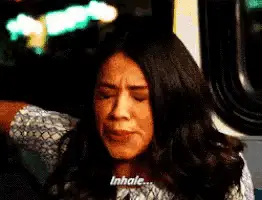 Person playing a euphonium or baritone, making a 'Ruuuuu' sound, with captions indicating inhaling.