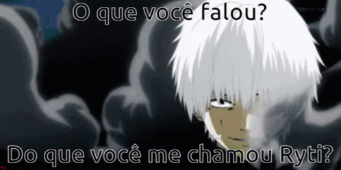 Anime character Ryti from Tokyo Ghoul reacts to being called "Ryti" with a menacing expression and Portuguese captions.