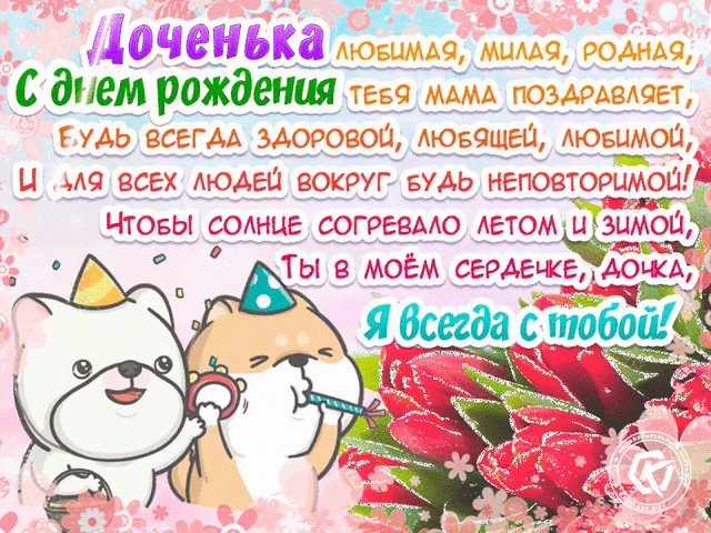 «С днём рождения, дочка!» открытка с поздравительными стихами